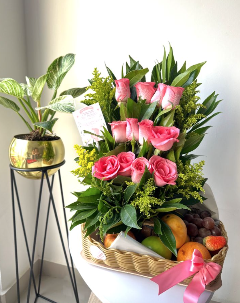 Arreglo de flores a Domicilio Bogotá – Flores con canasta de frutas