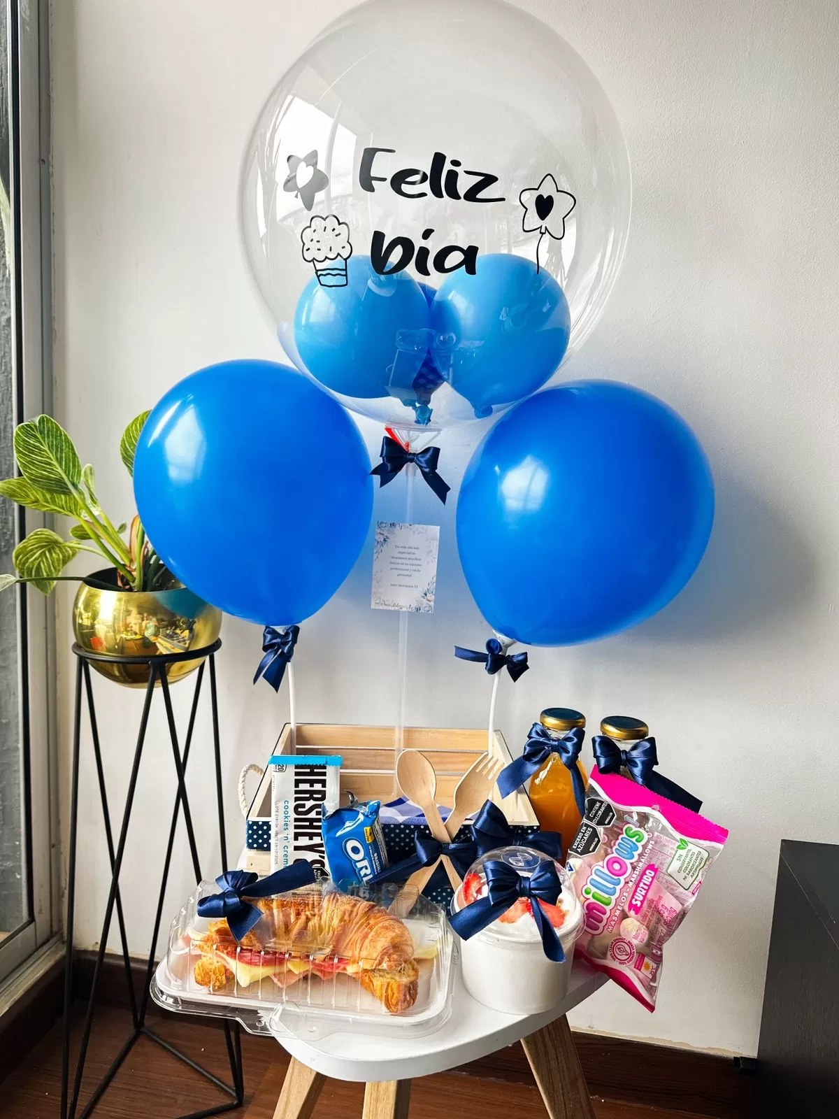 • Globo burbuja con relleno de 3 globos por dentro (te amo, feliz dia, feliz cumpleaños, feliz dia de la madre)